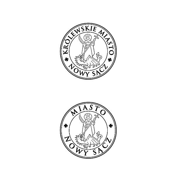 Ma kształt okrągły, w polu pieczęci występuje godło herbu miasta, w otoku napis: KRÓLEWSKIE MIASTO NOWY SĄCZ. Nawiązuje do najstarszych zabytków sfragistyki miejskiej Nowego Sącza.