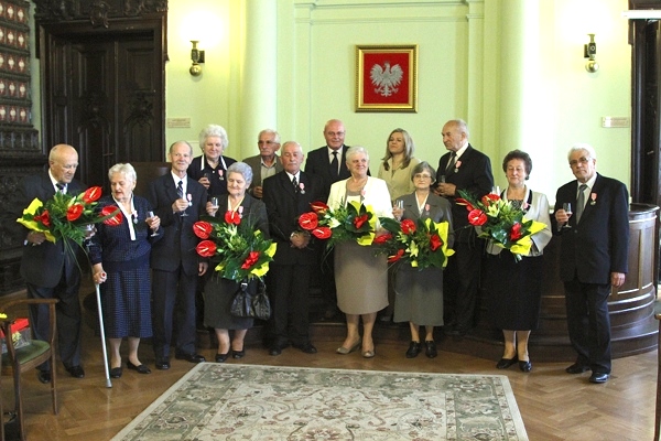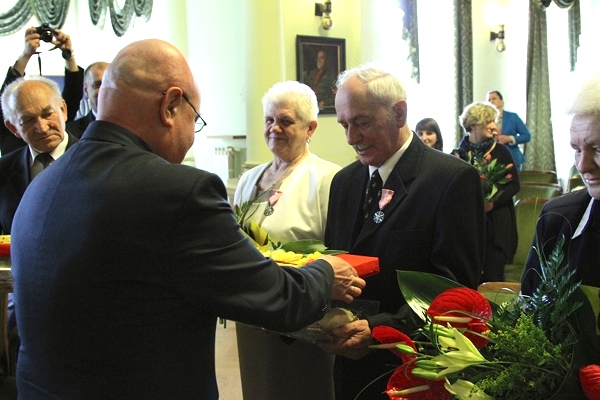 Jubilatom, wśród których byli Maria i Jan Koszykowie, Bronisława i Tadeusz Kurdzielowie, Janina i Stanisław Nalepowie, Jadwiga i Józef Orlita, Krystyna i Stanisław Wybraniec oraz Eleonora i Stanisław Zegartowscy, gratulacje oraz życzenia przekazała również kierownik USC Małgorzata Antkiewicz-Wójs. Następnie prezydent Ryszard Nowak wręczył medale za długoletnie pożycie małżeńskie przyznane przez Prezydenta RP. W uroczystości, uczestniczyli bliscy i przyjaciele Jubilatów.