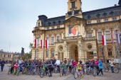 Niestety, niezbyt dobra pogoda, pozwoliła przeprowadzić tylko pierwszą część tej plenerowej imprezy. Ponad stu jej uczestników – dzieci, rodziców i dziadków, nie zraziło się przejmującym zimnem, wiatrem i deszczem i przejechało na kolarkach i góralach od Rynku, przez ulice Jagiellońską, Aleje Wolności, Długosza, Lwowską, Krańcową, aż do Miasteczka Rowerowego przy ulicy Nadbrzeżnej. Wśród nich byli i tacy, którzy przez minione 19 lat brali udział w każdym festynie; zaczynali jako kilkuletnie dzieci, a dziś to już trzydziestolatki.