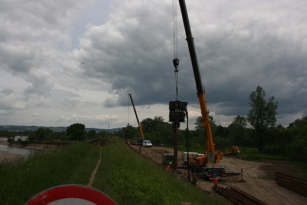 W sumie ścianka szczelna o długości około 250 m, która ma zabezpieczać powstałe w korpusie wału wyrwy i chronić osiedle Tłoki w przypadku dalszej degradacji zabezpieczeń powodziowych, gotowa ma być do końca przyszłego tygodnia. Jednak najbardziej newralgiczna część niebezpiecznego osuwiska, zostanie zabezpieczona do środy.