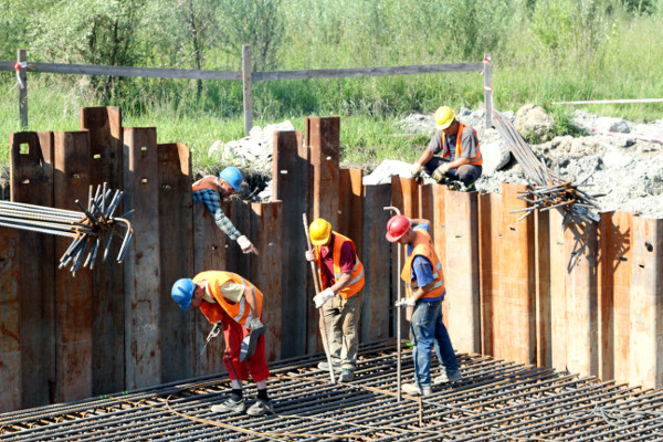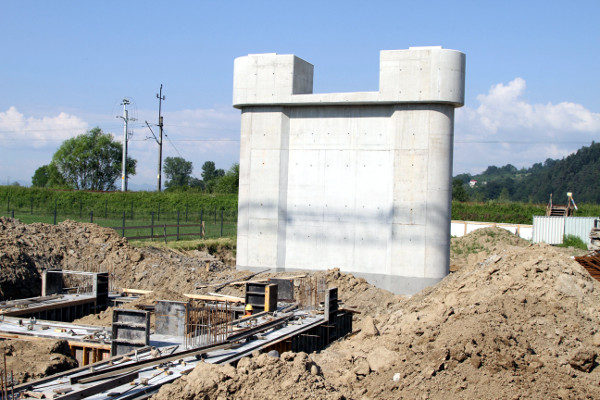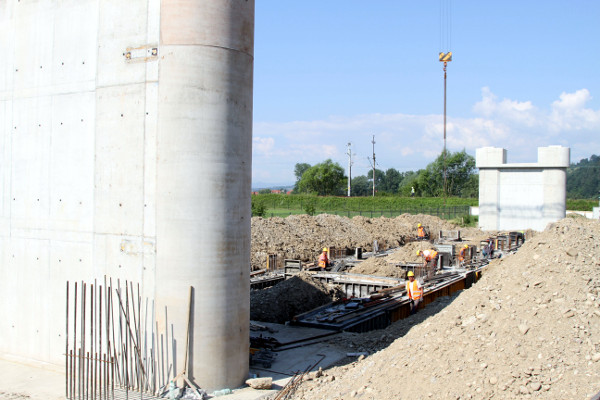 Prowadzone są roboty związane z deskowaniem i zbrojeniem filarów I, J. Trwa betonowanie ław wytwórni pod ustrój nośny. Trwają prace przy podporach C, K, L, J.
