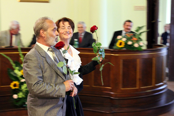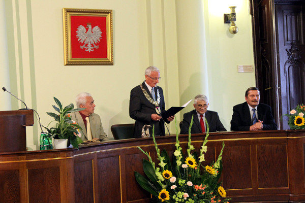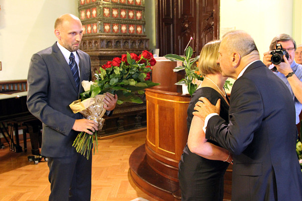 Następnie Przewodniczący Rady Miasta Jerzy Wituszyński wraz z zastępcami: Stefanem Chomoncikiem, Janem Opiło i Grzegorzem Doboszem, wręczyli okolicznościowy dyplom i statuetkę – przyznawaną Honorowym Obywatelom Miasta Nowego Sącza.
