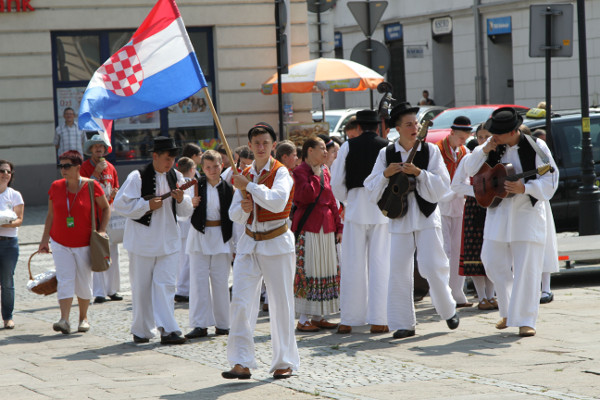 Poniedziałek 21 lipca, to podczas festiwalu ŚWIĘTO DZIECI GÓR, dzień chorwacko-lachowski. Dlatego na estradzie przed sądeckim ratuszem wystąpił zespół z Chorwacji "Petar Zrinski" oraz prosto z Pałacu Młodzieży w Nowym Sączu Zespół Regionalny "Sądeczoki".