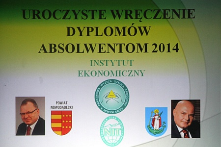 Prezydent Ryszard Nowak wziął udział w uroczystym wręczeniu dyplomów absolwentom studiów I stopnia Wydziału Ekonomicznego Państwowej Wyższej Szkoły Zawodowej z Nowym Sączu. W spotkaniu, które odbyło się w sali dawnego Kina Krokus, uczestniczyli przedstawiciele władz uczelni wraz z rektorem prof. Zbigniewem Ślipkiem, przedstawiciele Rady Miasta Nowego Sącza, sądeckich parlamentarzystów, przedstawiciele samorządów lokalnych, zaproszeni goście oraz absolwenci uczelni. Wykład okolicznościowy wygłosił Jan Golba, burmistrz miasta i gminy Muszyna.