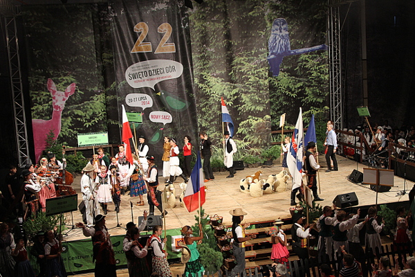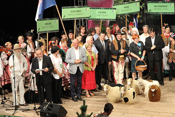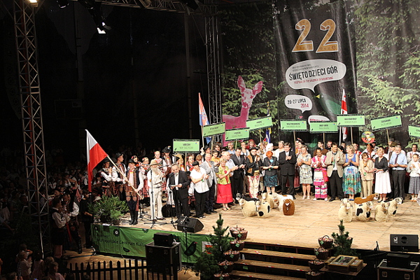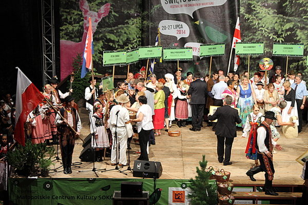 Antoni Malczak, dyrektor Małopolskiego Centrum Kultury SOKÓŁ, jednocześnie organizator festiwalu, w sposób szczególny podziękował współorganizatorom, partnerom, przyjaciołom i sympatykom festiwalu, których zaprosił na scenę. W tym gronie znalazła się m.in. wiceprezydent Bożena Jawor. Wszyscy razem wręczyli pamiątkowe baranki przedstawicielom zespołów uczestniczących w 22. Międzynarodowym Festiwalu Dziecięcych Zespołów Regionalnych ŚWIĘTO DZIECI GÓR 2014.