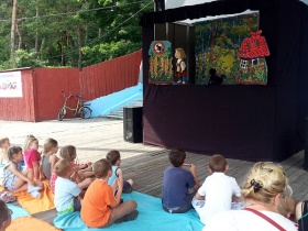 W sobotę (26 lipca) już od godz. 14:00 maluchy wzięły udział w spotkaniach teatralno-tanecznych, w ramach których odbył się spektakl lalkowy pt. "O straszliwym smoku, dzielnym Szewczyku, przepięknej królewnie i Królu Gwoździku".