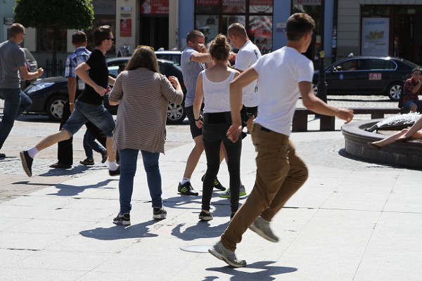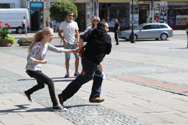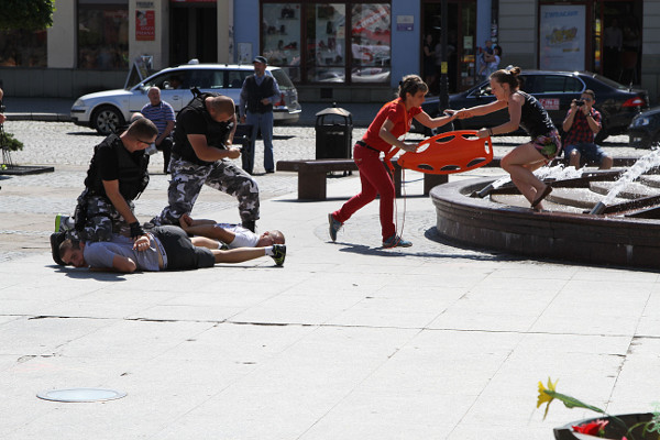 Pod hasłem "Nie bądź obojętny - REAGUJ", na płycie sądeckiego Rynku odbył się dzisiaj niecodzienny happening. Przedstawione pozoracje były przykładem na to, jak powinniśmy reagować na negatywne zjawiska, która dzieją się dookoła nas. Jednym z celów akcji było także uwrażliwienie Sądeczan na los - będącego w potrzebie - drugiego człowieka. Wydarzenie odbyło się pod patronatem prezydenta Ryszarda Nowaka.