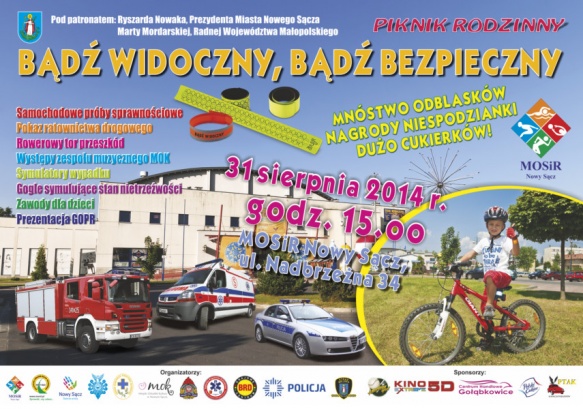 Piknikiem rodzinnym na terenie Miejskiego Ośrodka Sportu i Rekreacji przy ulicy Nadbrzeżnej, który odbędzie się w niedzielę 31 sierpnia o godz. 15:00, zostanie zainaugurowana kampania informacyjna "Bądź widoczny, bądź bezpieczny". Jej celem jest poprawa bezpieczeństwa pieszych na drodze i jest skierowana nie tylko do dzieci, ale również do dorosłych, w tym osób starszych.