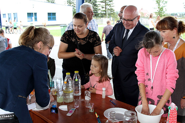 Dużym zainteresowaniem cieszył się stolik „czary-mary” przygotowany przez panie z laboratorium. Dzieci wprost oblegały stoisko i miały niesamowitą frajdę, oglądając jak w prosty i bezpieczny sposób można przeprowadzić ciekawe doświadczenia. Do magicznego stolika najmłodsi podchodzili nawet po kilka razy.