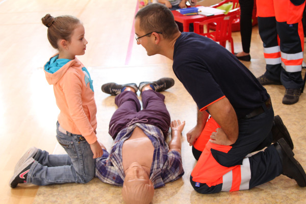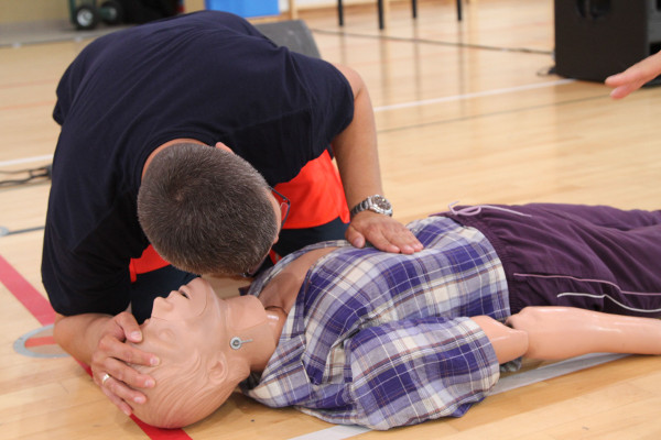 Krótkie szkolenie dla wszystkich uczestników z zakresu pierwszej pomocy przeprowadzili ratownicy Sądeckiego Pogotowia: Krzysztof Olejnik i Dariusz Potoczek. Każdy mógł poćwiczyć, na profesjonalnym fantomie ratowniczym, wykonywanie czynności resuscytacyjnych.