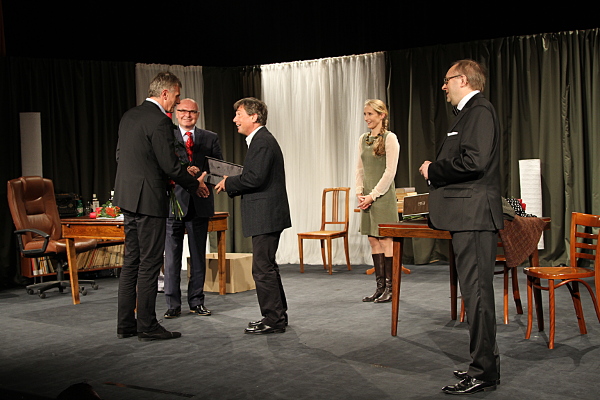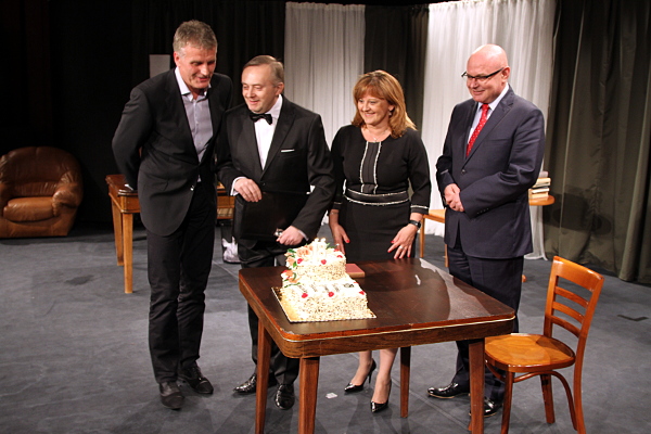 Pierwszy dzień XVIII Jesiennego Festiwalu Teatralnego zakończył się miłym akcentem dla Tomasza Mędrzaka, który świętował 40-lecie pracy artystycznej. Statuetkę w dowód uznania za twórczą pasję podczas dotychczasowej pracy aktorskiej z życzeniami pomyślności i sukcesów przekazał prezydent Ryszard Nowak i Józef Kantor. Album autochromów pt. "Małopolska" wręczyła Marta Mordarska, radna wojewódzka. Natomiast z rąk Marty Jakubowskiej, dyrektora Miejskiego Ośrodka Kultury oraz Janusza Michalika, dyrektora artystycznego festiwalu, Tomasz Mędrzak odebrał bukiet kwiatów wraz z życzeniami. Publiczność nagrodziła artystę gorącą owacją!