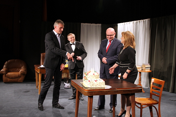 Ryszard Nowak, Prezydent Miasta Nowego Sącza, Marta Jakubowska, dyrektor Miejskiego Ośrodka Kultury oraz Józef Kantor, dyrektor Wydziału Kultury i Sportu, zdmuchnęli symboliczną świeczkę na urodzinowym torcie XVIII Jesiennego Festiwalu Teatralnego. Wszystko na kilka minut przed wieczornym spektaklem "Edukacja Rity" w reżyserii Tomasza Mędrzaka, który zainaugurował najważniejsze wydarzenie teatralne jesieni w regionie.