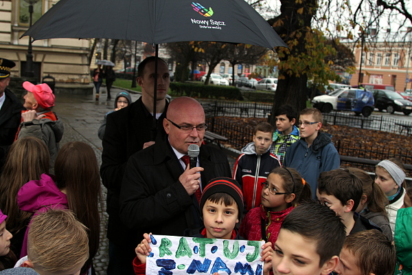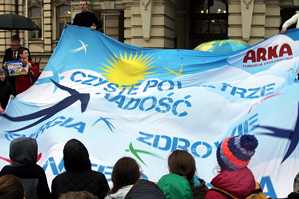 - Ponad połowa zanieczyszczeń powietrza w naszym mieście pochodzi z emisji spalin przez samochody. Jednocześnie wchodzimy w okres grzewczy, a nie wszyscy korzystają z ekologicznych pieców. Kiedy przychodzi zmierzch, nad miastem unoszą się kłęby nieprzyjemnego dymu. Ponieważ w piecach palą wasi rodzice i wasi dziadkowie, dlatego to wy musicie teraz uczyć starszych jak dbać o środowisko i powietrze. Musimy to zrobić dla was i dla kolejnych pokoleń - powiedział prezydent Ryszard Nowak do dzieci biorących udział w happeningu.