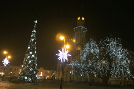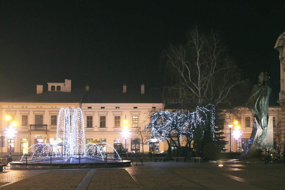 Od kilku dni na sądeckim Rynku, zwłaszcza w godzinach wieczornych, można poczuć się bardzo świątecznie. Wszystko za sprawą 17-metrowej choinki, która została postawiona w centralnym punkcie Rynku, a także przestrzennych świetlistych gwiazd zainstalowanych wokół ratusza.