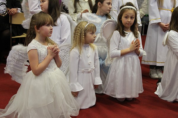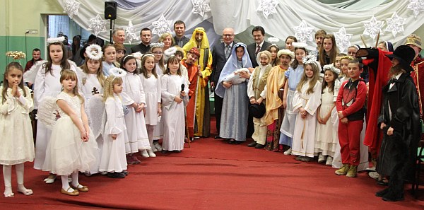 Wigilię poprzedziły jasełka w wykonaniu uczniów Zespołu Szkół Podstawowo- Gimnazjalnych nr2. Młodzież nawiązała do problemów współczesnej rodziny i we wspaniały sposób przedstawiła tajemnicę narodzenia Jezusa.
