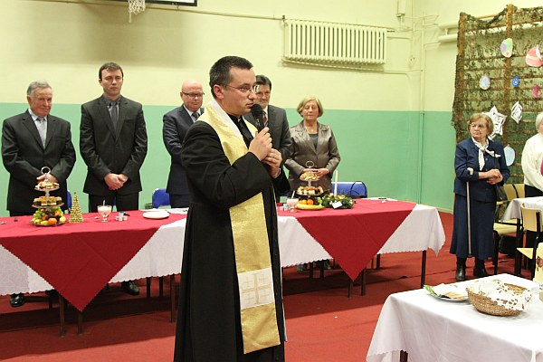 Gości witał dyrektor szkoły Janusz Chruślicki, a opłatki pobłogosławił w zastępstwie księdza prałata Antoniego Koterli, ks. senior Krzysztof Szczygieł.