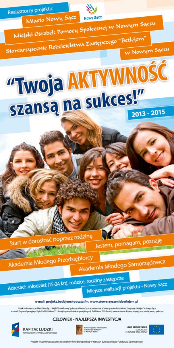 Jest to oferta skierowana do mieszkańców Nowego Sącza w wieku między 15-24 rokiem życia, którzy wcześniej nie uczestniczyli w działaniach projektu "Twoja AKTYWNOŚĆ szansą na sukces!", a chcą rozwijać się społecznie i zawodowo.