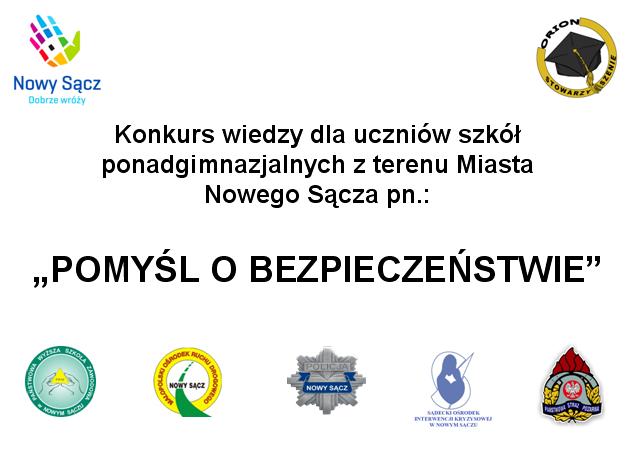 14 stycznia rusza, organizowany przez Urząd Miasta Nowego Sącza oraz Stowarzyszenie Na Rzecz Integracji Środowisk Akademickich "ORION", konkurs pn. "Pomyśl o bezpieczeństwie". Celem konkursu jest promocja wiedzy o bezpieczeństwie oraz rozwijanie właściwych postaw i zachowań na wypadek zaistnienia różnych zagrożeń.