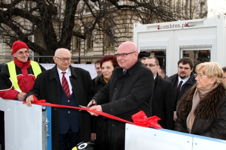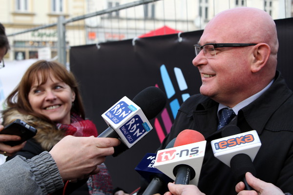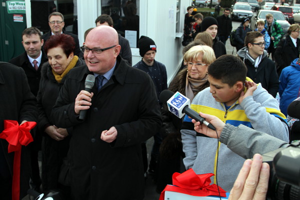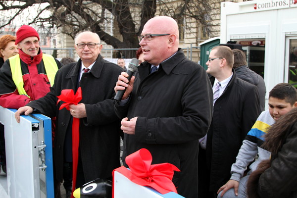 Prezydent Ryszard Nowak uroczyście przeciął wstęgę, otwierając w ten sposób oficjalnie lodowisko przed sądeckim ratuszem. Wydarzenie obserwowali sądeczanie, którzy w tym czasie korzystali z lodowej tafli w centrum miasta. Prezydentowi towarzyszyli również: Bożena Jawor, przewodnicząca Rady Miasta Nowego Sącza, sądeccy radni oraz przedstawiciele mediów.