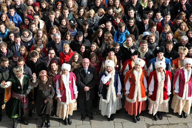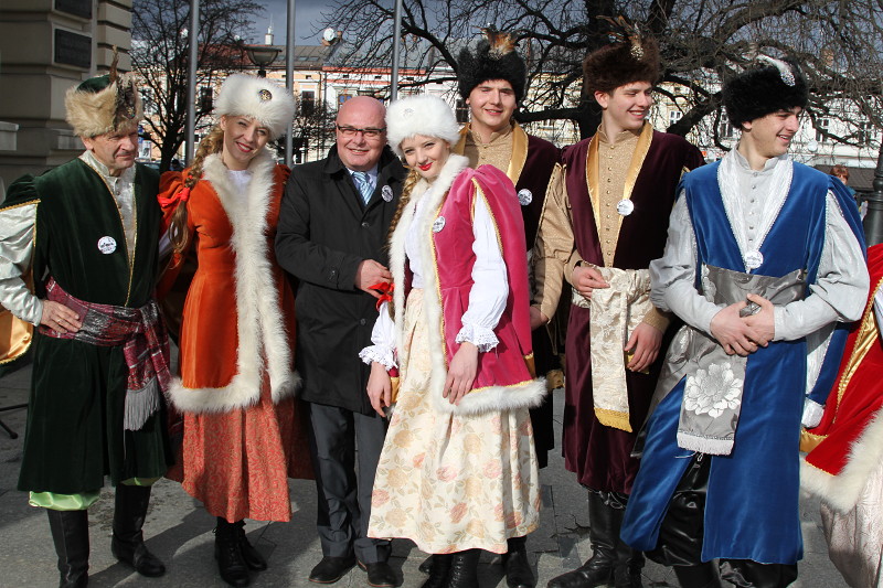 Po zakończeniu tradycyjnego Poloneza, korowód ustawił się przed wejściem do ratusza, gdzie Prezydent Miasta zaprosił wszystkich do pamiątkowego zdjęcia.