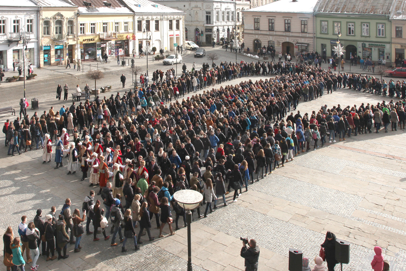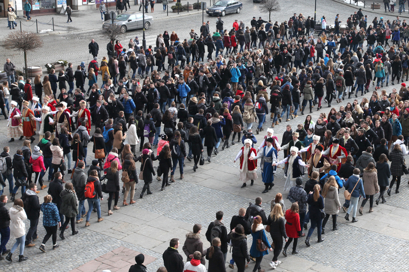 - Poloneza czas zacząć - tymi słowami prezydent Ryszard Nowak rozpoczął tradycyjne spotkanie maturzystów przed sądeckim ratuszem. Niemal 2000 uczniów klas maturalnych zatańczyło tradycyjnego Poloneza pod kierunkiem Romana Piechocińskiego wraz z członkami Zespołu Regionalnego "Sądeczanie".