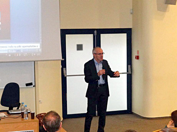 W drugiej części wykładu został przeprowadzony quiz wiedzy o transporcie. Dzięki niemu wiemy teraz, że Polska zajmuje drugie miejsce w Europie pod względem przewozu towarów, ile jest ciężarówek w Polsce, jak również ile kilometrów rocznie przebywają ciężarówki w firmie Zet Transport. Pan Jan Załubski dzielił się z nami swoim ponad 20 letnim doświadczeniem w prowadzeniu swojej firmy. Opowiadał o historii powstania firmy, jak zaczynał swoją działalność na rynku transportu międzynarodowego oraz jaką drogę przebył aby dziś zarządzać ponad 150 ciągnikami siodłowymi wraz z naczepami oraz blisko 300 pracownikami.