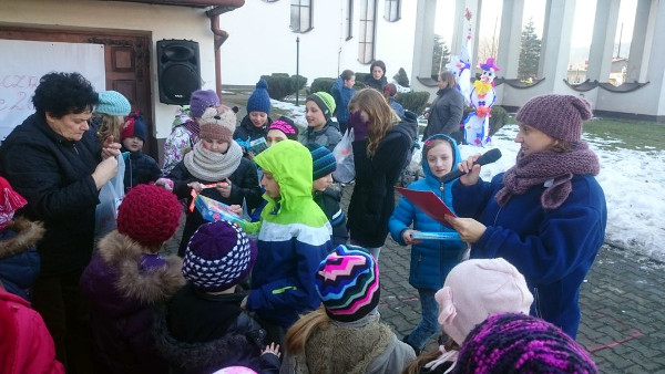 Tradycyjnie zabawie przyglądał się proboszcz ks. Eugeniusz Mrożek, który podziwiał umiejętności artystyczne dzieci w ramach konkursu "Malowanie na śniegu". W atmosferze wielkiej radości odbyła się także zabawa w lepienie bałwana i jak się okazało - dla chcącego nie ma nic trudnego.