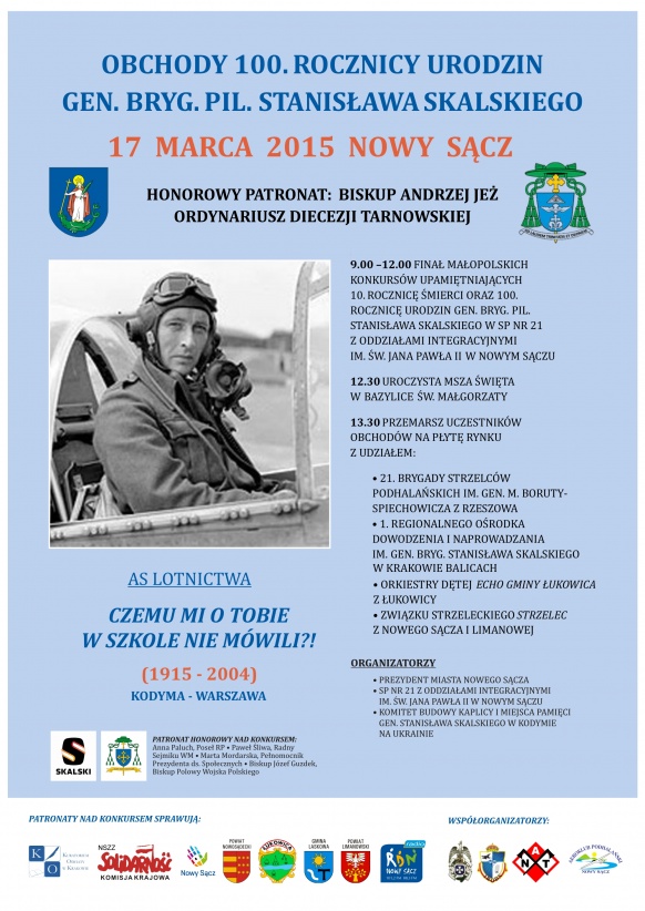 17 marca, pod patronatem bp Andrzeja Jeża, ordynariusza Diecezji Tarnowskiej, odbędą się obchody 100. rocznicy gen. bryg. pil.Stanisława Skalskiego. Wydarzenie rozpocznie się o godz. 9:00 finałem małopolskich konkursów upamiętniających gen. Skalskiego, natomiast o godz. 12:30 odbędzie się uroczysta msza święta odprawiona w Bazylice św.Małgorzaty.