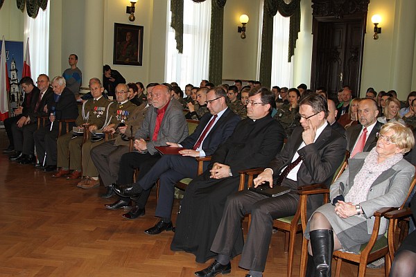 Wiceprezydent Jerzy Gwiżdż witając gości i uczestników konkursu podkreślił, że dzisiaj mamy obowiązek mówić o odwadze żołnierzy, których nazwano niezłomnymi.