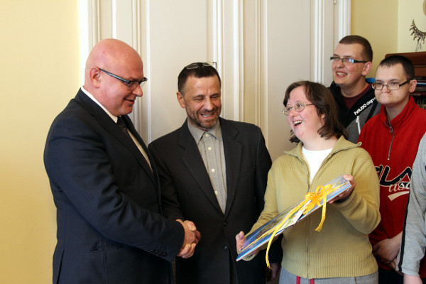 Podopieczni Warsztatów Terapii Zajęciowej przy Fundacji "Mada" wraz z opiekunami złożyli prezydentowi Ryszardowi Nowakowi wielkanocne życzenia. Przekazali również świąteczny upominek. Każdy z uczestników spotkania w sądeckim ratuszu miał dla prezydenta swoje własne życzenia.