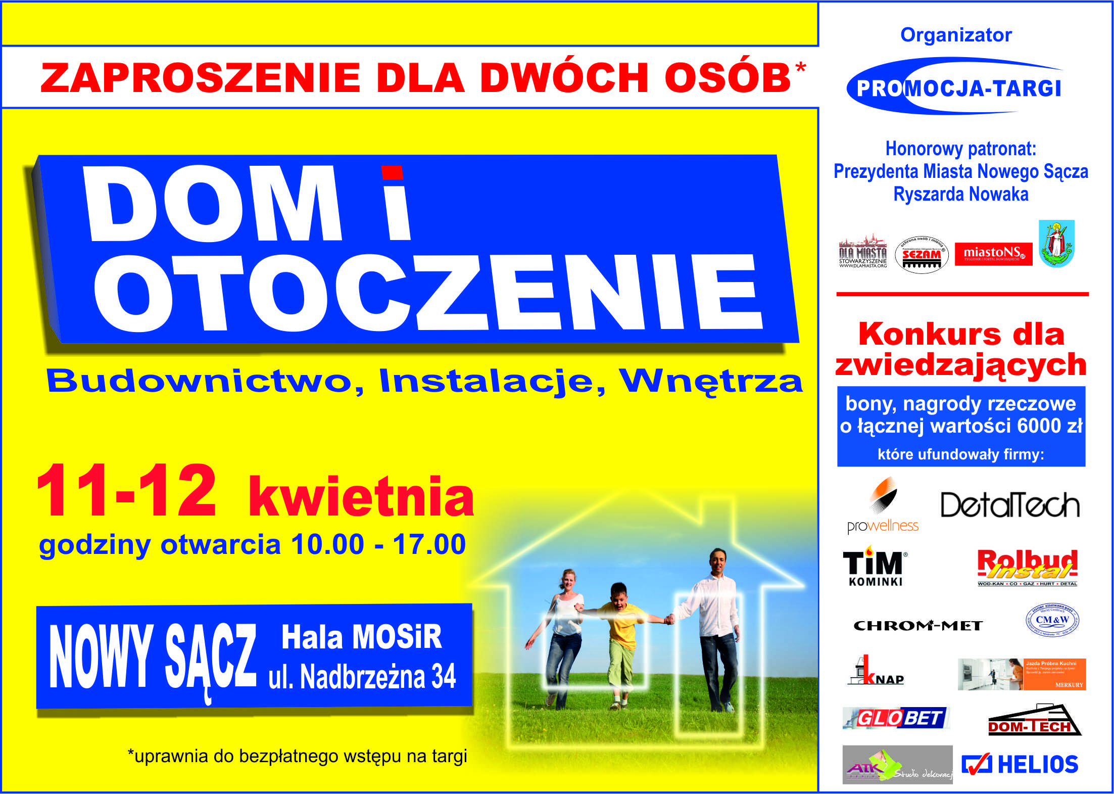 W dniach 11 i 12 kwietnia, pod patronatem prezydenta Ryszarda Nowaka, odbędą się Sądeckie Targi "Dom i Otoczenie". Hala sportowa MOSiR przy ul. Nadbrzeżnej zamieni się w miejsce, gdzie na kilkudziesięciu stoiskach, firmy z Nowego Sącza oraz innych rejonów Polski, zaprezentują aktualną ofertę: budownictwa, instalacji, wnętrz.