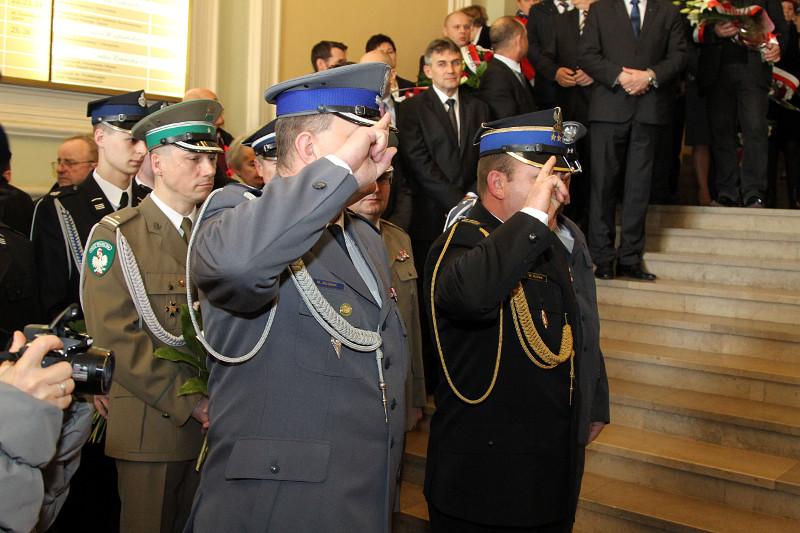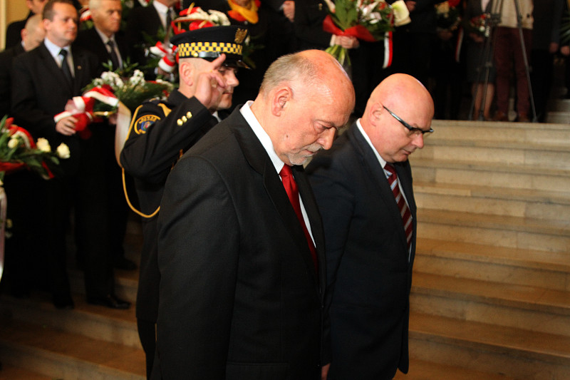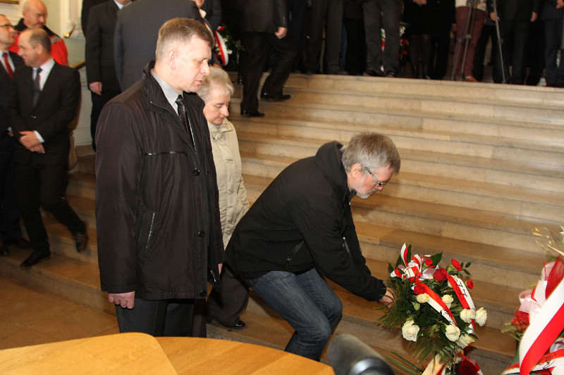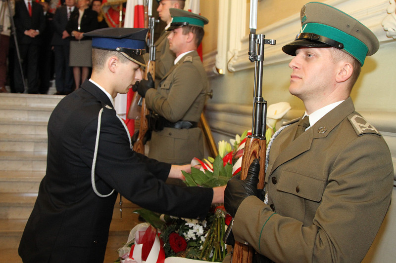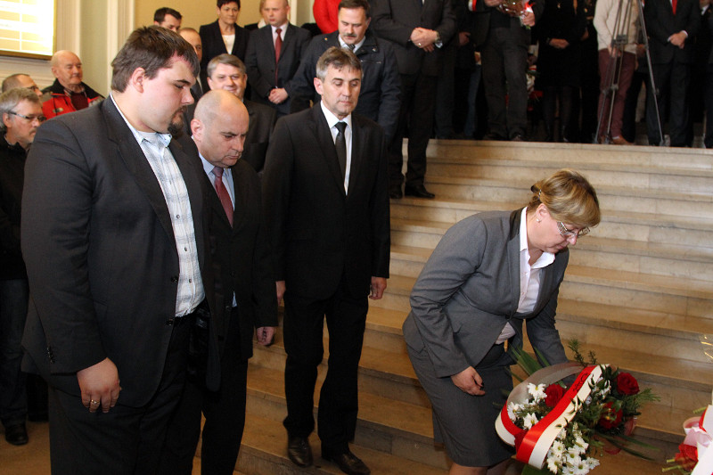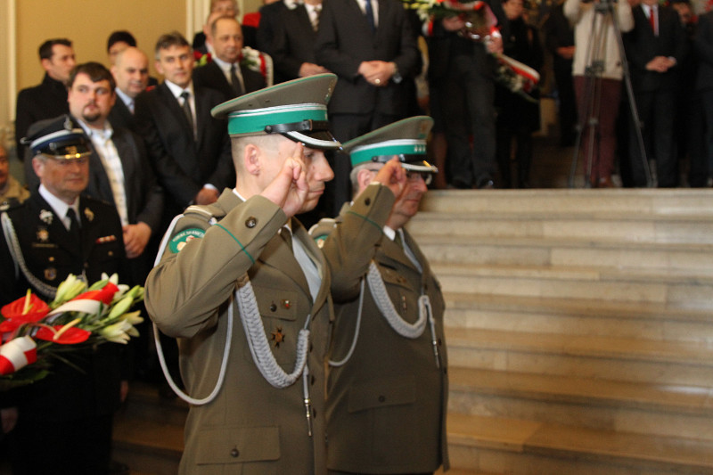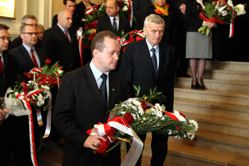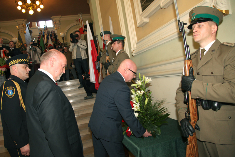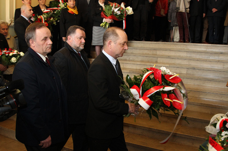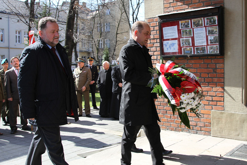 Wiązanki kwiatów złożyli: Prezydent Nowego Sącza Ryszard Nowak wraz z zastępcą Jerzym Gwiżdżem, senator Stanisław Kogut, parlamentarzyści, przedstawiciele Rady Powiatu ze starostą Markiem Pławiakiem na czele i Rady Miasta z Przewodniczącą Bożeną Jawor, przedstawiciele Policji, Straży Pożarnej, Straży Granicznej, Zakładu Karnego, OSP Biegonice. Nie zabrakło wiązanek biało-czerwonych kwiatów od przedstawicieli Prawa i Sprawiedliwości, NSZZ „Solidarność”, Solidarności ZNP, Klubu Gazety Polskiej, Związku Inwalidów Wojennych, Muzeum Okręgowego oraz sądeckich szkół, które licznie przybyły wraz ze sztandarami na uroczystości.