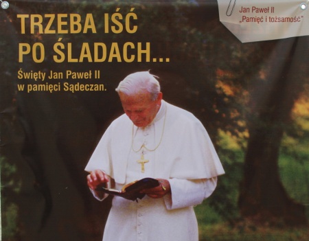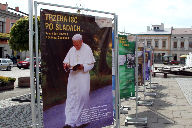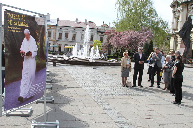 "Trzeba iść po śladach... Święty Jan Paweł II w pamięci Sądeczan" - taki tytuł nosi otwarta, w pierwszą rocznicę kanonizacji Papieża Polaka, wystawa na płycie sądeckiego Rynku. Patronat honorowy nad wystawą objął bp Andrzej Jeż, Ordynariusz Tarnowski.