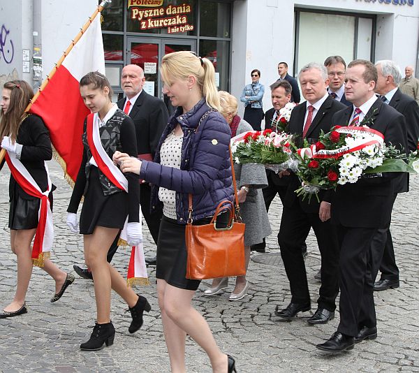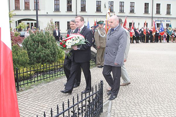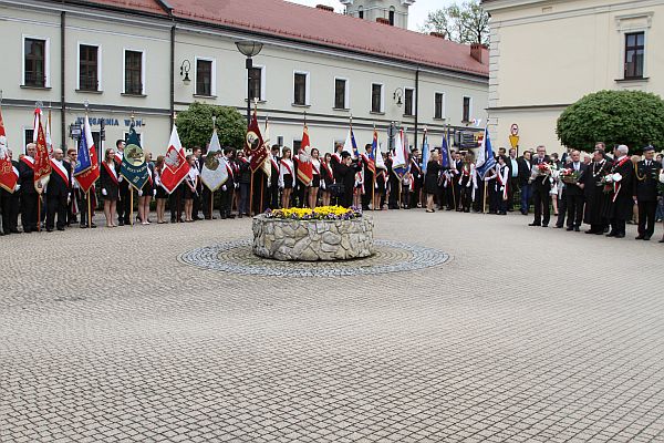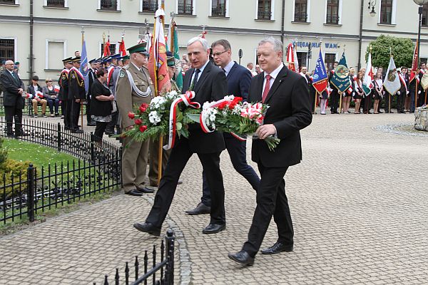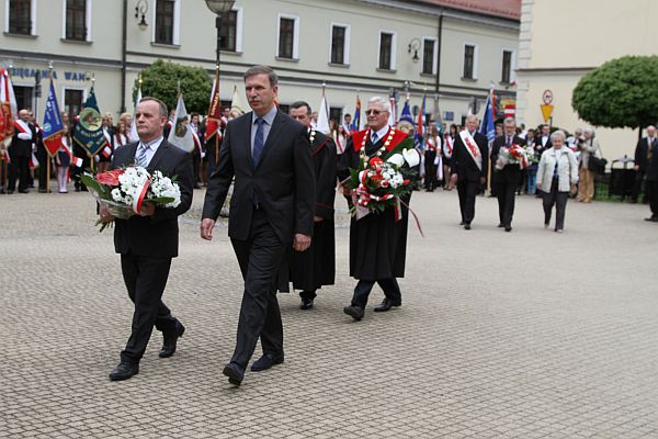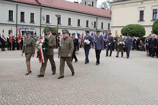 Następnie przedstawiciele parlamentarzystów, władze miasta i powiatu, samorządowcy, przedstawiciele służb mundurowych, organizacji, szkół i instytucji przemaszerowali ulicami św. Ducha, Lwowską, Rynkiem i ul. Piotra Skargi na Plac 3. Maja, gdzie pod pomnikiem Stanisława Małachowskiego odbyły się dalsze uroczystości.