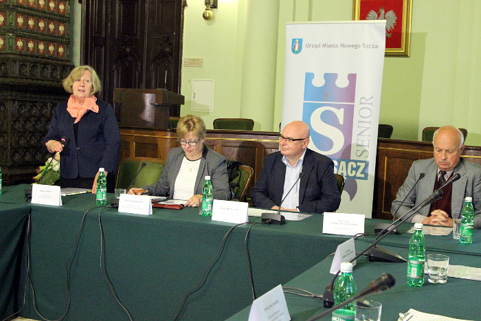 Na specjalne zaproszenie Prezydenta Miasta Nowego Sącza oraz Prezydium Sądeckiej Rady Seniorów w posiedzeniu udział wzięli m.in. doc. dr hab. Barbara Gryglewska z Katedry Chorób Wewnętrznych i Gerontologii Collegium Medium Uniwersytetu Jagiellońskiego w Krakowie, Ewelina Małek – kierownik Delegatury NFZ w Nowym Sączu oraz lek. med. Artur Puszko Dyrektor Szpitala Specjalistycznego im. J. Śniadeckiego w Nowym Sączu. Spotkanie poprowadziła Marta Mordarska Pełnomocnik Prezydenta ds. Społecznych. Posiedzenie otworzyła przewodnicząca Rady Seniorów Maria Baran. Prezydent Ryszard Nowak podziękował gościom oraz członkom Sądeckiej Rady Seniorów za kolejne inicjatywy i działania, które mają służyć seniorom.