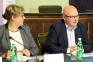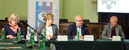 Podczas posiedzenia wykład „System opieki geriatrycznej w Małopolsce – stan obecny i potrzeby” przedstawiła doc. dr hab. Barbara Gryglewska – Katedra Chorób Wewnętrznych i Gerontologii Collegium Medium Uniwersytetu Jagiellońskiego w Krakowie. W swojej prezentacji przedstawiła najważniejsze wskaźniki dotyczące geriatrii w Polsce oraz w Województwie Małopolskim. Obecnie w Województwie przypada 1,7 geriatrów na 100 tys. mieszkańców co jest minimalnym wynikiem w Unii Europejskiej. Na oddziałach geriatrycznych przypada 4,7 łóżka na 100 tys. mieszkańców. W krajach Unii Europejskiej wskaźnik ten waha się od 10 -75 łóżek na 100 tys. Docent dr hab. Barbara Gryglewska w swoim wystąpieniu zwróciła uwagę, iż liczba lekarzy geriatrów zbliża się do wskaźników Unii Europejskiej, jednak większość lekarzy tej specjalności pracuje na terenie miasta Krakowa. Pani docent podkreśliła, iż liczba oddziałów geriatrycznych jest zdecydowanie niewystarczająca. Brak większej liczby oddziałów uniemożliwia zwiększenie liczby miejsc akredytowanych do prowadzenia specjalizacji z geriatrii. Kolejnym problem na jaki zwróciła uwagę to niedostateczny dostęp do specjalistycznych porad geriatrycznych, których poza Krakowem brakuje.