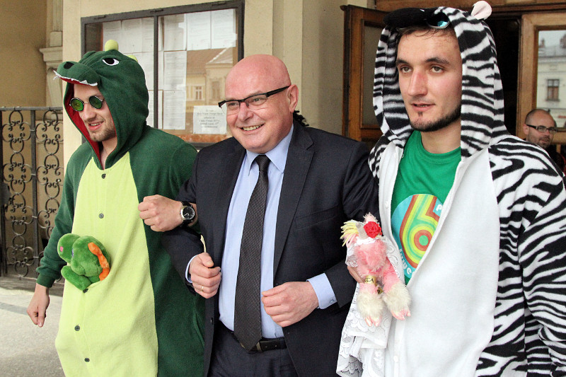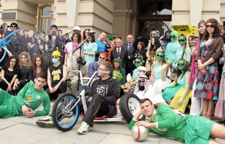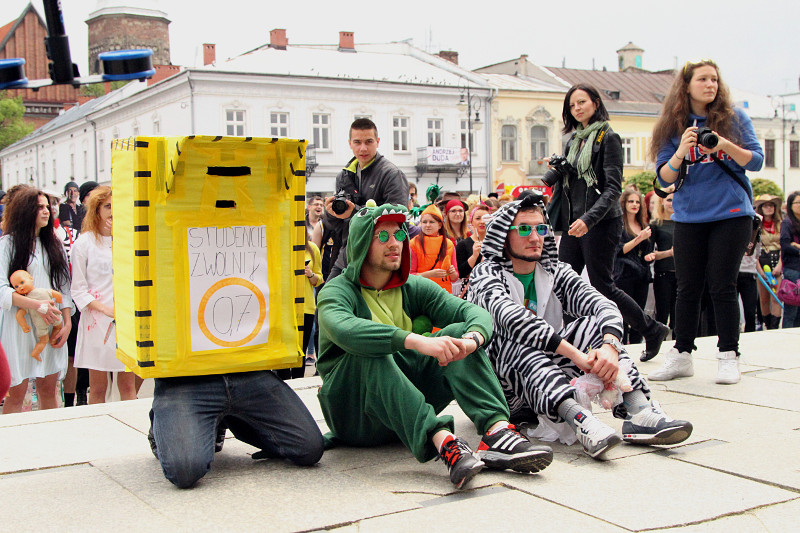 Następnie władze uczelni, na czele z prorektorem dr Januszem Paterem i rektorem elektem Mariuszem Cygnarem, wybrali studentów, którzy przygotowali najciekawsze przebrania na Juwenalia. Rywalizację wygrał Kuba, który na chwilę „zamienił” się w fotoradar.