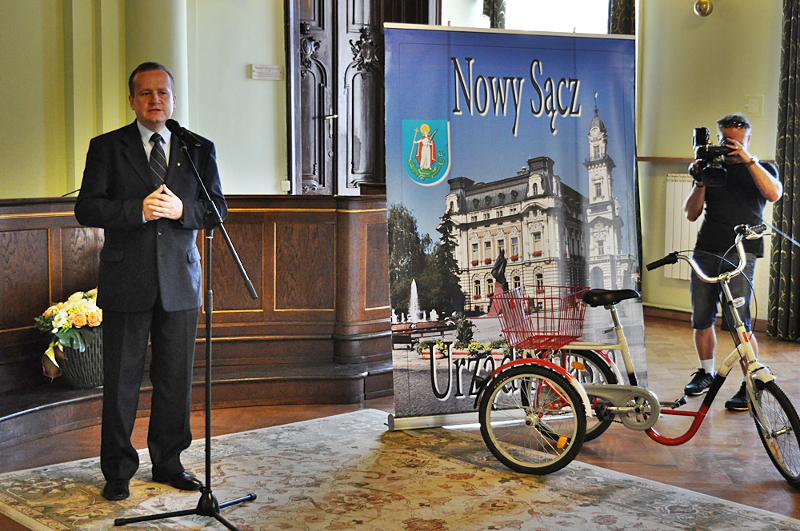 W sali reprezentacyjnej sądeckiego Ratusza odbyło się uroczyste wręczenie specjalistycznych rowerów czwórce niepełnosprawnych dzieci. Prezydent Ryszard Nowak podziękował Fundacji Eco Textil, która od trzech lat współpracuje z Urzędem Miasta Nowego Sącza. Dzięki tej współpracy na zasadach partnerstwa jest możliwe obdarowywanie dzieci specjalistycznym sprzętem rehabilitacyjno-rekreacyjnym. - Są ludzie i instytucje, które chętnie dzielą się z osobami potrzebującymi. Z tego się cieszę i bardzo za to dziękuję - mówił Ryszard Nowak.