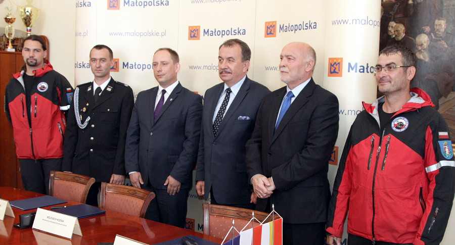 W Krakowie, w siedzibie Zarządu Województwa Małopolskiego, wicemarszałek Wojciech Kozak oraz zastępca Prezydenta Miasta Nowego Sącza Jerzy Gwiżdż podpisali umowę o udzieleniu pomocy finansowej z przeznaczeniem na doposażenie i utrzymanie Grupy Ratownictwa Specjalnego OSP w Nowym Sączu w kwocie 20 tys. zł. W spotkaniu wzięli udział przedstawiciele sądeckiej grupy - naczelnik Piotr Ciesielka oraz druh Michał Gaik, przewodnik psa ratowniczego i planista. Podobne dofinansowanie zostało udzielone Grupie Ratowniczo-Poszukiwawczej z Kęt, a umowa w tym zakresie została podpisana z burmistrzem gminy Kęty Krzysztofem Klęczarem.