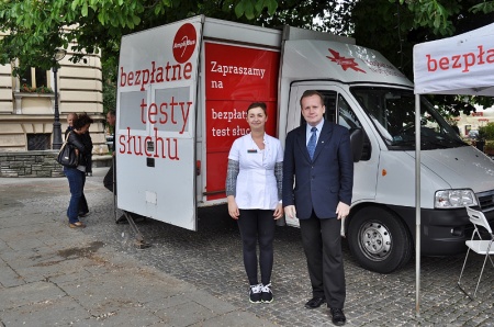 W specjalnym, mobilnym gabinecie, który przez dwa dni parkował przy ratuszu na płycie miejskiego Rynku przebadało się ponad 150 chętnych sądeczan. Kilkanaście osób skierowana na dalsze badania laryngologiczne. Tydzień wcześniej odbyła się specjalna konferencja i wówczas Leszek Langer oraz pracownicy firmy Amplifon - Jadwiga Gorczyca Malina - kierownik oddziału w Nowym Sączu i Olga Kerczyńska - kierownik do spraw szkoleń i rozwoju firmy, zachęcali do udziału w darmowych badaniach słuchu. Niedosłuch jest obecnie jednym z największych problemów XXI wieku. Z roku na rok przybywa osób, które skarżą się na niedosłuch, bądź na różnego rodzaju szumy i inne niedogodności.