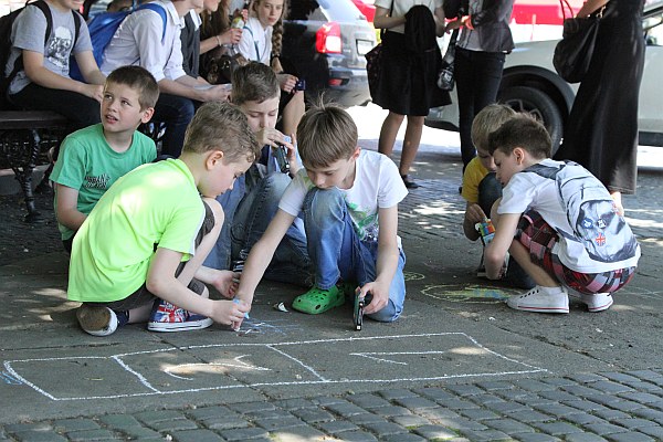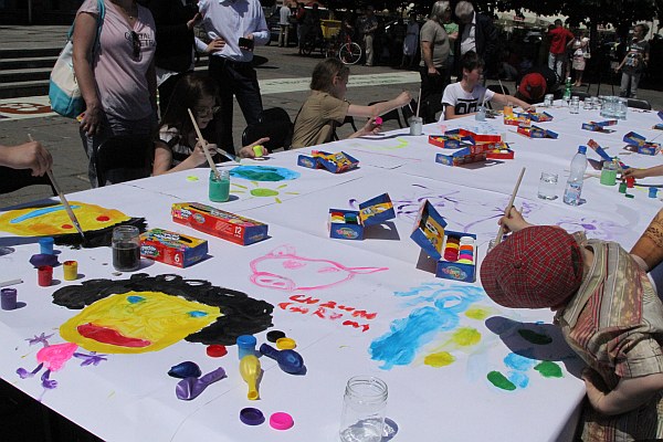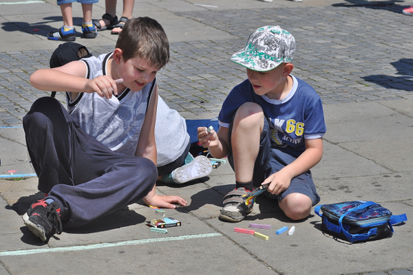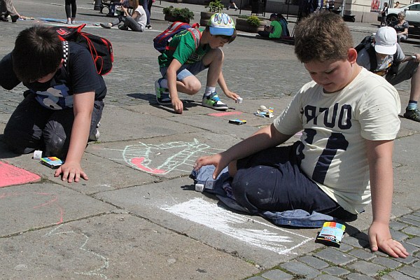 Po raz kolejny najmłodsi wraz z rodzicami i opiekunami pokolorowali sądecki Rynek. Każdy mógł kolorową kredą namalować to co chciał. Były krajobrazy, portrety,a nawet plansze do gry „w klasy”. Zabawa była wyjątkowa tym bardziej, że w tym roku równocześnie rysowali nasi przyjaciele z Chorzowa oraz Zakopanego.