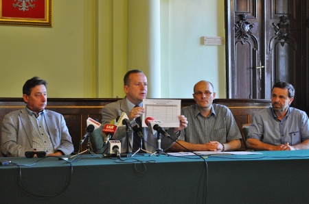 W sali reprezentacyjnej ratusza odbyła się konferencja prasowa, podczas której omawiano kwestie inicjatyw obywatelskich, związanych z fatalnymi projektami ustaw dotyczących osób niepełnosprawnych, nad którymi obecnie trwają dyskusje w sejmie. Leszek Langer - dyrektor wydziału ds. problematyki osób niepełnosprawnych ocenił, że to co rządzący państwem urzędnicy administracji szczebla centralnego robią zwłaszcza w ostatnim czasie, można zdefiniować tylko w jeden sposób - jest to szkodzenie osobom niepełnosprawnym. Na dowód swoich słów zaprezentował raport NIK z 19 maja bieżącego roku, mówiący m.in. o tym, że środki z PFRON trafiające do samorządów są dalece niewystarczające, a zadania nakładane przez rząd na samorządy powodują, iż nie ma możliwości, aby efektywnie zagospodarować tak skąpe wsparcie.