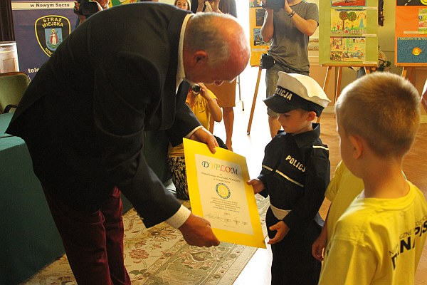 Pierwszy konkurs „Jestem odblaskowy – jestem widoczny”, zorganizowali wspólnie pod patronatem Prezydenta Nowego Sącza Ryszarda Nowaka Komenda Miejska Straży, Krajowe Centrum Bezpieczeństwa Ruchu Drogowego i Małopolski Ośrodek Ruchu Drogowego. W jury zasiedli przedstawiciele organizatorów, wiceprezydent Jerzy Gwiżdż, komendant Adam Kauffman, dyrektor KCBRD Agata Wróblewska, Wiesław Kądziołka- zastępca dyrektora Małopolskiego Ośrodka Ruchu Drogowego w Nowym Sączu i plastyk, prof. Andrzej Szarek, którzy gratulowali najmłodszych wspaniałych pomysłów, artystycznej wyobraźni i wyrazili nadzieję, że przedszkolaki będą pamiętały o przepisach bezpiecznego poruszania się po drodze i co więcej te zasady będą przypominały dorosłym. Wszyscy uczestnicy otrzymali upominki, zestaw odblasków i słodkie niespodzianki.