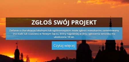 Na podstawie zarządzenia Prezydenta Miasta Nowego Sącza, od 17 sierpnia do 30 września, pełnoletni mieszkańcy zameldowani na terenie miasta, mogą składać swoje projekty do budżetu obywatelskiego dla Nowego Sącza. W sumie na ten cel została przeznaczona kwota 2 mln zł.
