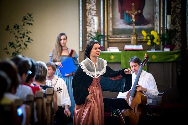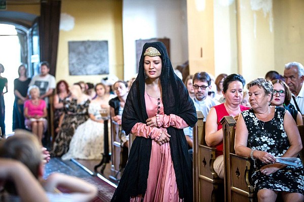 Na przykościelnym dziedzińcu miał miejsce pokaz mody historycznej. Stroje historyczne zaprojektowała i wykonała dr Maria Molenda, która też osobiście prowadziła pokaz.