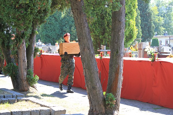 - Dzisiaj po wielu latach przygotowań chowamy szczątki 30 żołnierzy, którzy zginęli na terenie Małopolski. Byli to młodzi mężczyźni, którzy w dużej części są bezimienni zginęli idąc na zachód, walcząc z wojskami hitlerowskimi. Taki mieli rozkaz i ten rozkaz wykonali do końca. Kulturę narodu mierzy się szacunkiem tego narodu do drugiego człowieka, ktoś kto nie szanuje innych sprowadza nieszczęście, ten kto szanuje najtrudniejsze problemy potrafi wcześniej czy później rozwiązać. W tym miejscu w kwaterze wojskowej spoczną żołnierze, którzy oddali życie- mówił wojewoda małopolski Jerzy Miller.