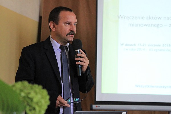 Podczas narady prezydent Ryszard Nowak oraz dyrektor Wydziału Edukacji Józef Klimek podziękowali za pracę dyrektorowi Zespołu Szkół Budowlanych Grzegorzowi Barnasiowi, który zrezygnował z funkcji dyrektora.