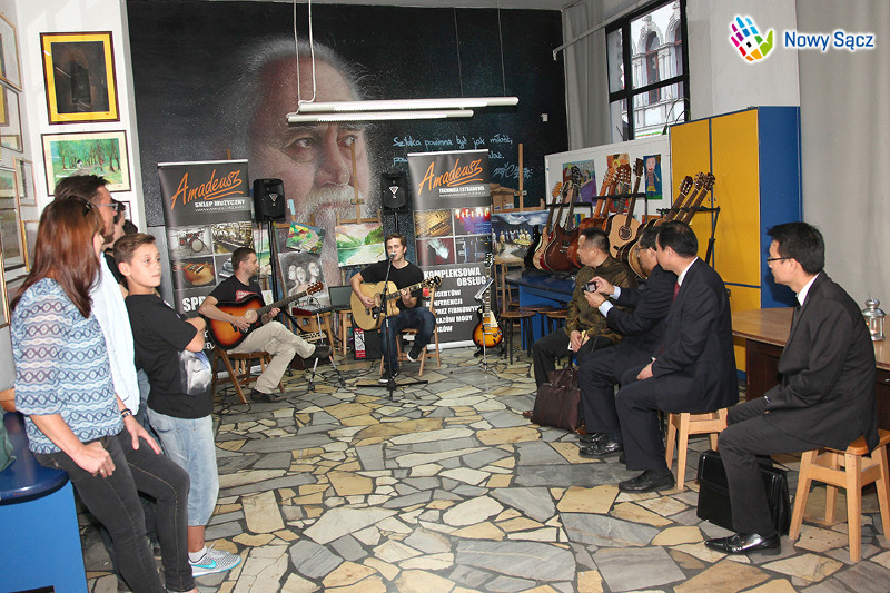 Podczas wieczornego spaceru ulicami Nowego Sącza, goście z Suzhou niespodziewanie natrafili na muzyczną prezentację "Gitarowe granie na sądeckim deptaku", zorganizowaną przez Pałac Młodzieży i Pawła Niecia, prowadzącego na co dzień koła gitarowe. Była to okazja do krótkiego muzycznego spotkania w filii placówki przy ulicy Jagiellońskiej. Goście z Chin przyznali, że całe miasto zrobiło na nich ogromne wrażenie, a szczególnie kameralny klimat Nowego Sącza, który ma bardzo wiele uroku.
