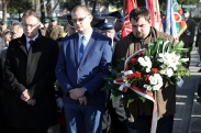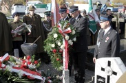Kwiaty pod odsłoniętym Pomnikiem Żołnierza Poległego złożyły delegacje władz miasta z prezydentem Ryszardem Nowakiem, przewodniczącą Rady Miasta Bożeną Jawor i radnymi Michałem Kądziołką oraz Patrykiem Wichrem, a także poseł Arkadiusz Mularczyk, przedstawiciele stowarzyszeń i organizacji kombatanckich, przedstawiciele służb mundurowych oraz uczniowie Szkoły Podstawowej nr 14.
