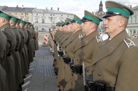 Na zakończenie uroczystości, na płycie sądeckiego Rynku odbyła się defilada wszystkich pododdziałów Związku Strzeleckiego "Strzelec" Organizacji Społeczno-Wychowawczej, a także Kompani Reprezentacyjnej oraz Orkiestry Reprezentacyjnej Straży Granicznej z Karpackiego Ośrodka Wsparcia Straży Granicznej w Nowym Sączu.